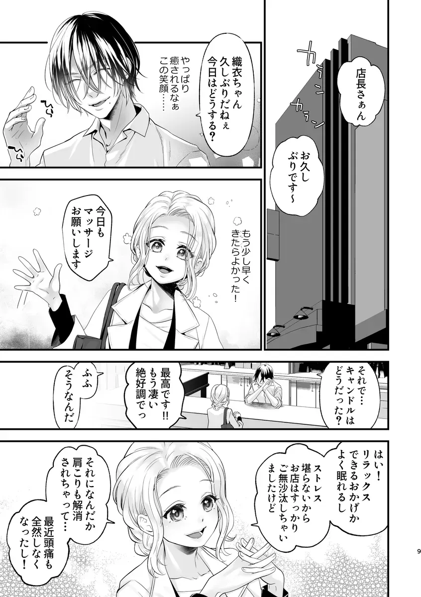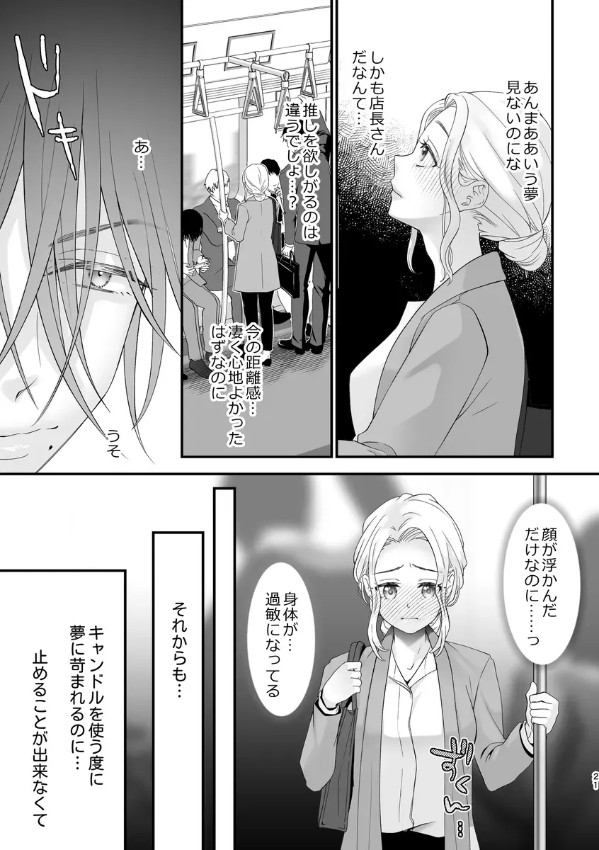 仕事に疲れた会社員・西畑織衣は、行きつけのキャンドル専門店で過ごす時間を心の支えにしていた。ある日、店長から渡されたアロマキャンドルを使うと、驚くほど深い眠りと回復感を得る。心地よさに惹かれ、正式に購入を申し出る織衣だったが、店長は「使い方には気をつけて」と意味深な忠告を残す。その夜から、織衣は不思議で甘美な夢を見るようになり、日常に違和感を覚え始める。やがて彼女は、使用制限時間を超えてキャンドルを使ってしまったことに気づく。抑えきれない変化の理由を求め、織衣は再びキャンドル店へ向かうのだった。