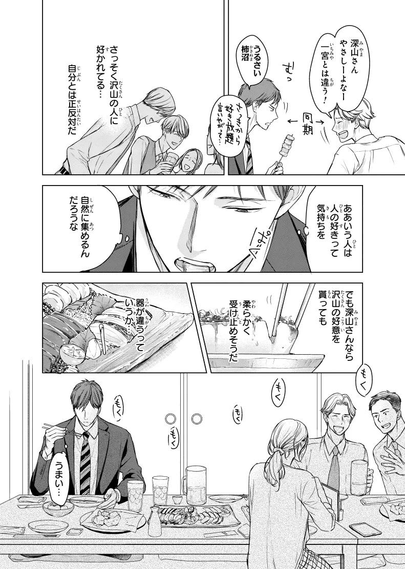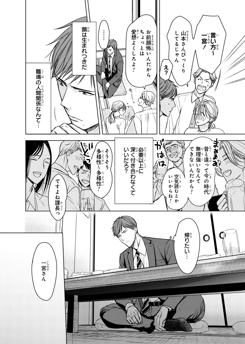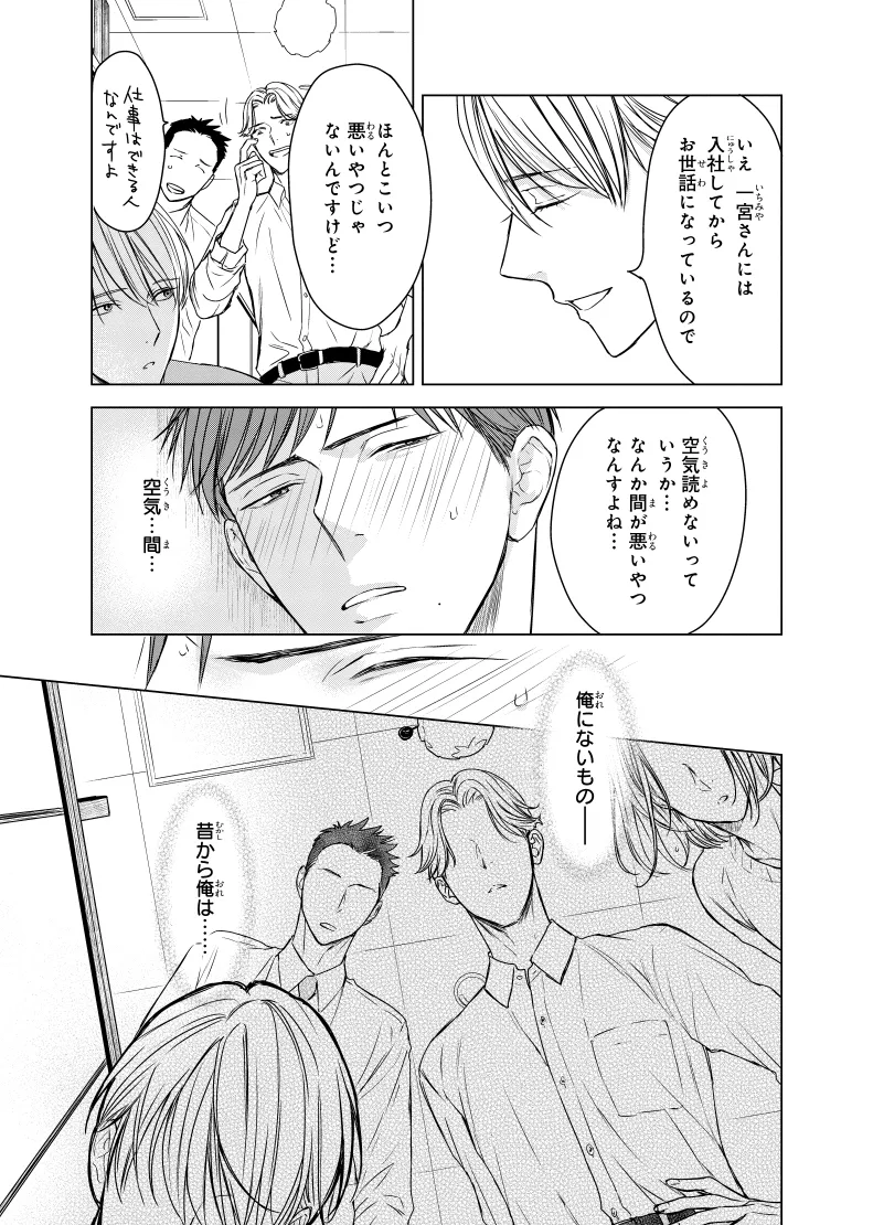 「俺、キスができない体質なんだ」それでも、あの人になら…触れられたい。学生時代の裏切りが原因で、他人との深い関わりを避けて生きてきた一宮。特に“キス”は拒絶反応が出るほどのトラウマで、恋愛なんて必要ないと諦めていた。だが、ある日。会社の飲み会で潰れた一宮が目を覚ますと、そこには同僚・深山の姿が。誰にでも優しく、仕事も完璧な社内の人気者──そんな彼が、なぜか妙に距離が近い。「…僕に、挿れてください」酔った深山の突然の告白と欲望に、一宮の心と身体はかき乱されていく。さらに彼から「体質改善を手伝う」と提案され、始まった秘密の関係。実は深山もまた、“ある体質”に悩んでいた――。冷めた心を溶かすような、優しくて熱い彼の手。この関係の先にあるのは、癒しか、それとも新たな傷か…。