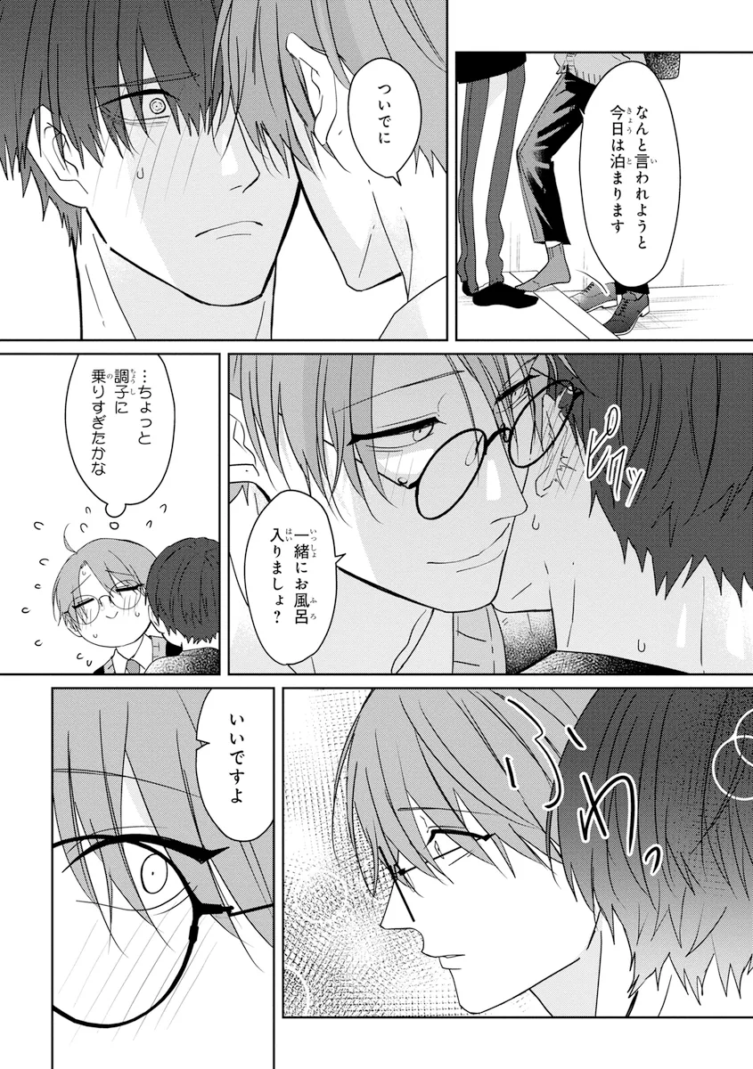 人付き合いが苦手で、同僚からの飲みの誘いをいつも断っている教師・柳木。彼は「オメガ」という特異な体質を抱えながら、周囲にそれを隠して静かに生きていた。そんな柳木には、同じ職場の男性教師・朝永という恋人がいる。二人の関係は誰にも知られていない。ある日、朝永もまた飲み会に誘われ、「柳木先生が行くなら自分も行く」と思わず口にしてしまう。その不自然な発言に一瞬ひやりとする柳木だったが、幸い関係が露見することはなかった。その後、朝永は柳木の自宅に泊まることになり、二人きりの時間が訪れる。柳木のヒート周期は長く、これまで決定的な一線を越えることはなかったが、朝永の想いは次第に抑えきれないものへと変わっていく。そして、距離が一気に縮まるきっかけは、何気ないはずのバスタイムの中で訪れる――。