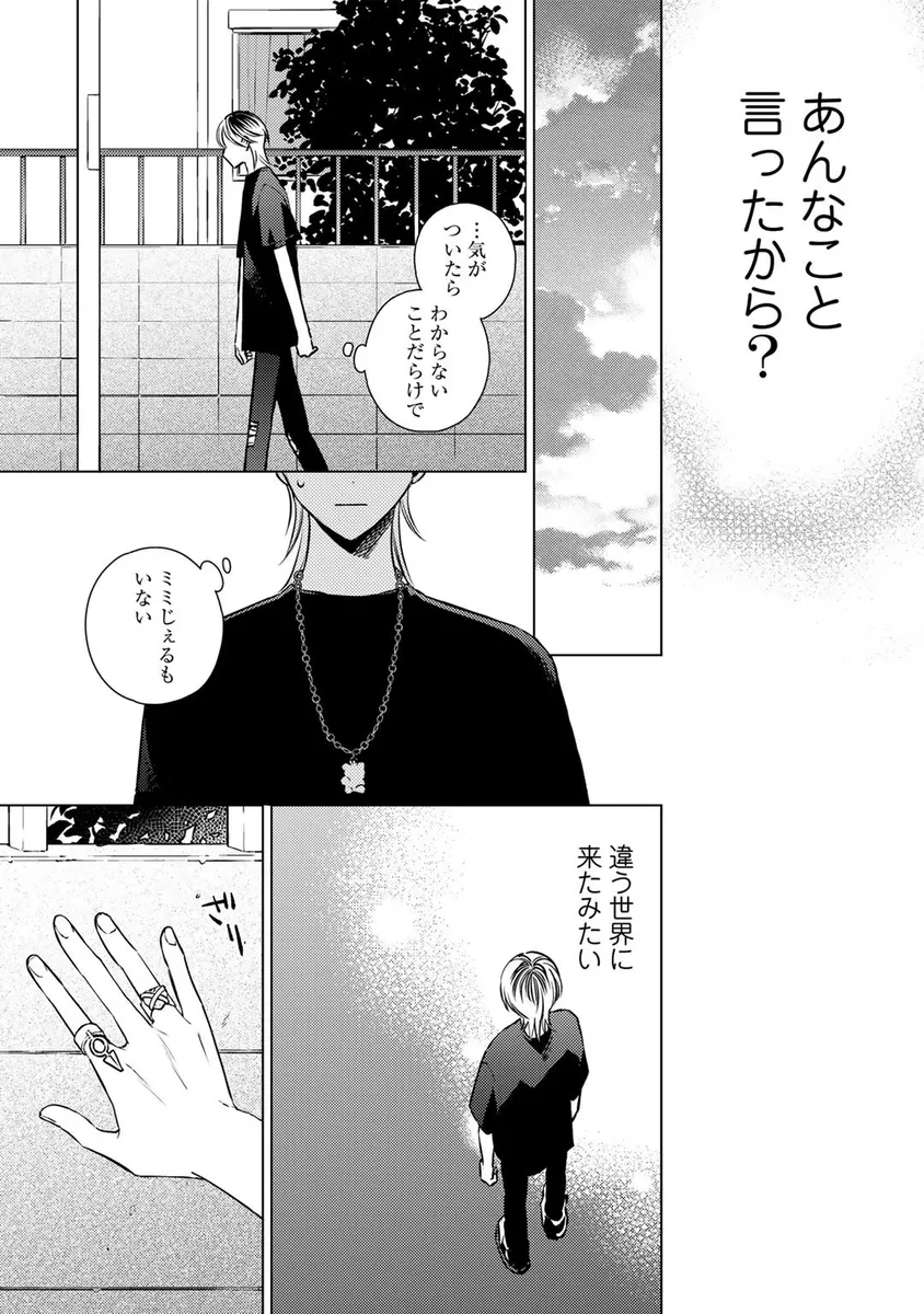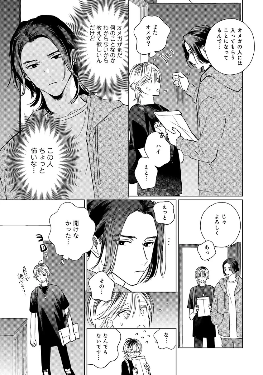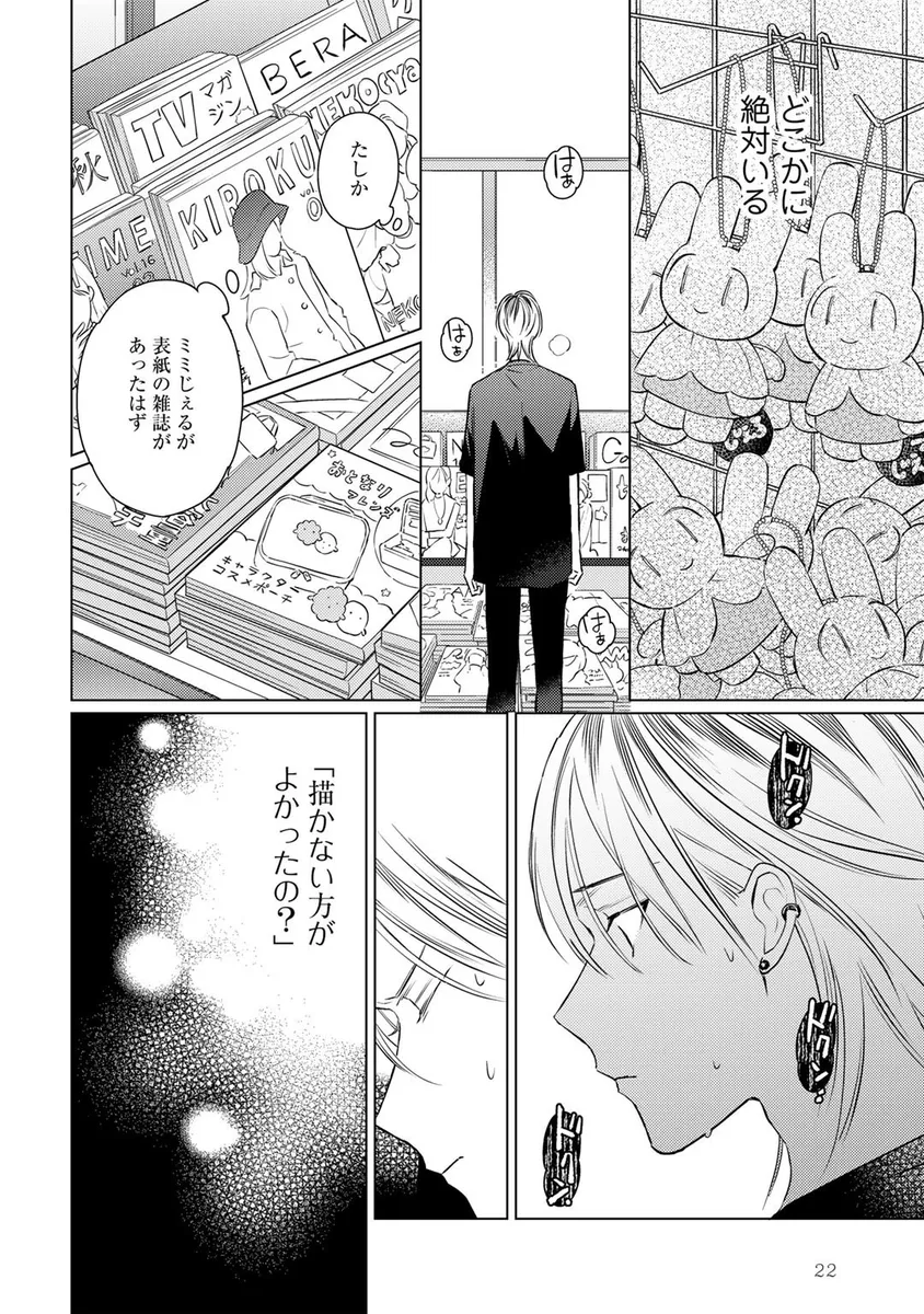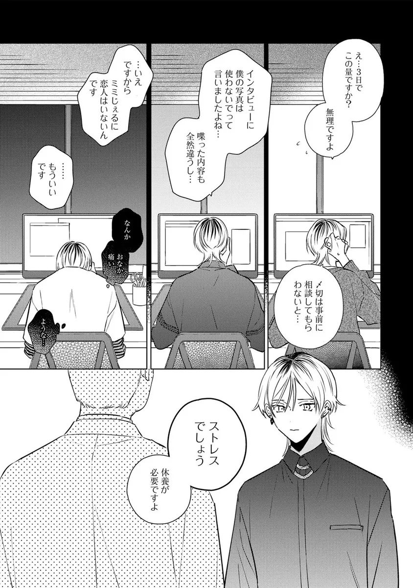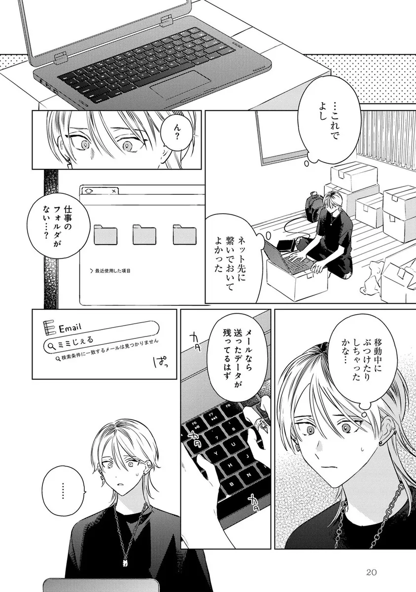 人気キャラクター「ミミじぇる」の作者として活動していた青年・伊波るく。しかし、ある日突然「ミミじぇるの絵柄が変わった」「作者は女性じゃなかったのか」といった心ない声に傷つき、るくは仕事を辞めて遠くの街へ引っ越すことを決める。新天地へ向かう飛行機の中、るくは大きな揺れをきっかけに記憶が曖昧になり、さらに病院で「第二性別」に関する思いがけない検査結果を告げられてしまう。混乱したまま新居へ向かったるくの前に現れたのは、少しぶっきらぼうで威圧感のある管理人の男性。人と関わることに臆病になっていたるくは、彼の不器用な優しさに戸惑いながらも、少しずつ心を揺らされていく。過去の傷、隠してきた自分、そして思いがけない出会いが交差する、繊細な再出発BL。