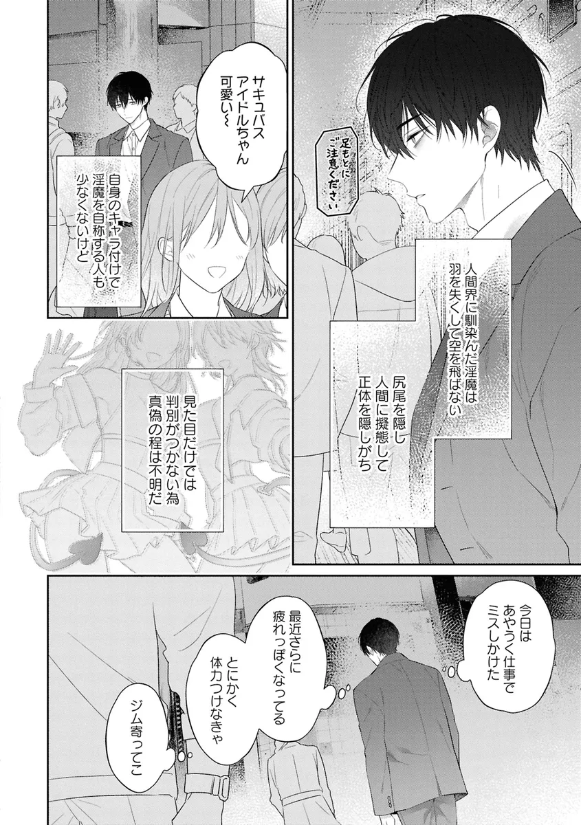 この世界には人間と悪魔が共に暮らしている。こっち側に取り残された淫魔たちが徐々に子孫を増やし、今や人口の数パーセントが淫魔だとか。人間界に馴染んだ淫魔は羽を失くして空を飛ばない。尻尾を隠して人間に擬態し、姿を隠している。自身の見た目で淫魔を自称する人も少なくはないが、見た目だけでは判別がつかないため審議は不明だ。淫魔と関わることなんて滅多にないし俺は無関心だった。こいつに再会するまでは…。