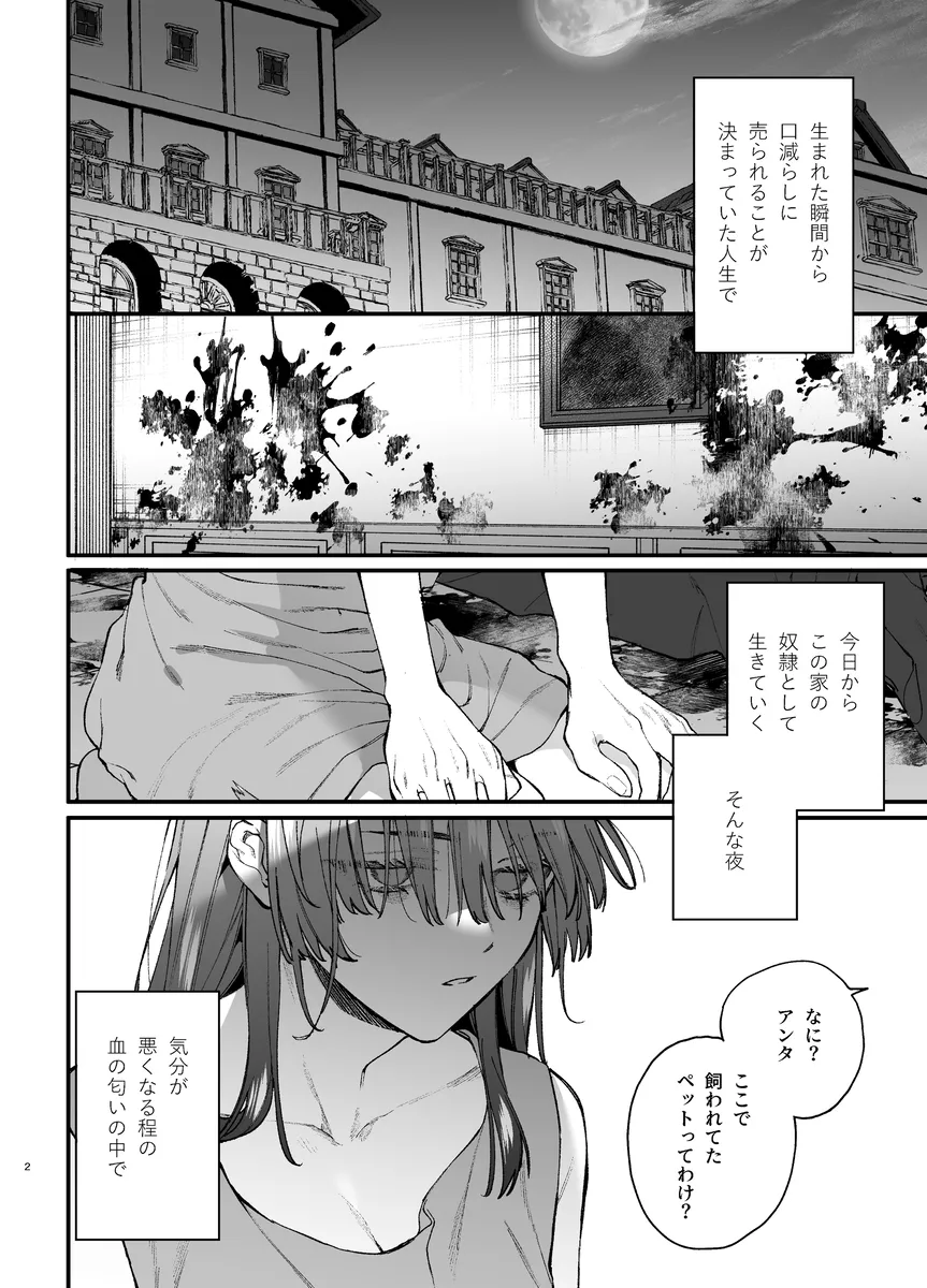 生まれた瞬間から口減らしに売られることが決まっていた人生。今日からこの家の奴隷として生きていく。そんな夜、気分が悪くなるほどの血の匂い中で、私と殺し屋さんは出会った。最後に何か言い残したことある?「私の就職先がパアになった責任取ってください!」肩透かしを食らう殺し屋の男。気が付くと私はその男のアソコを無理やりフェラさせられていた。口の中でびくびくと波打っているのがわかる。「ちゃんと飲めよ!」強制的に精液を飲まされる。それ以来、私は殺し屋の男の性処理ペットにされて―。