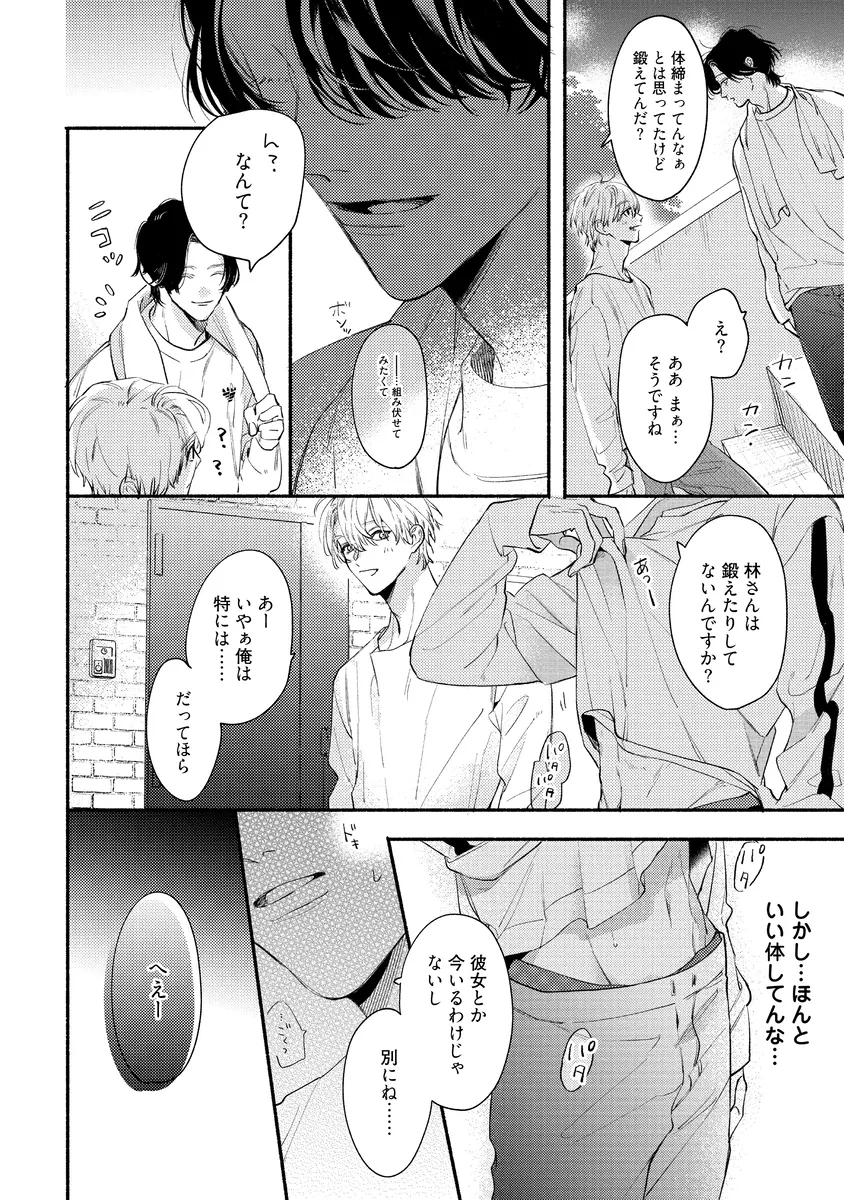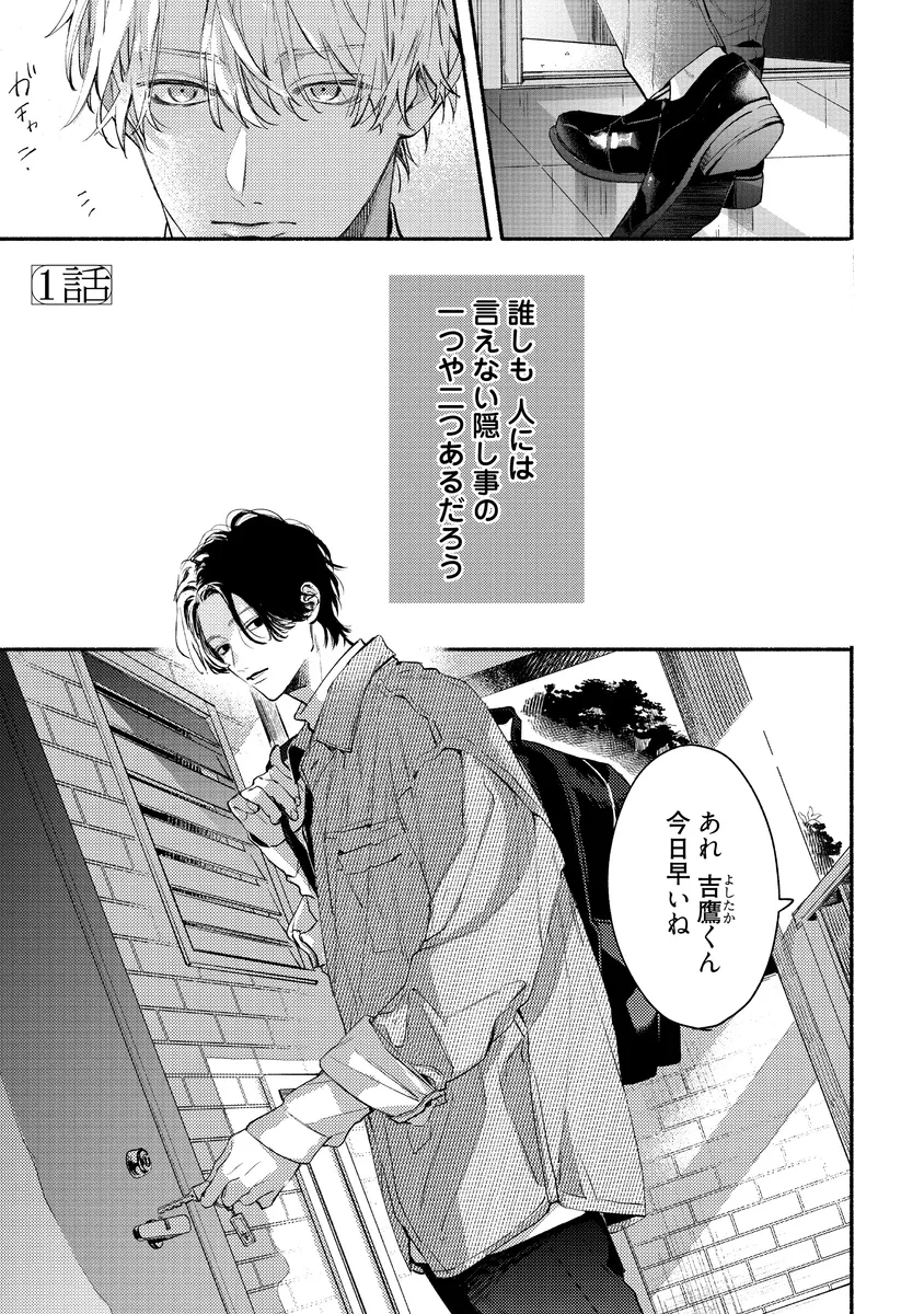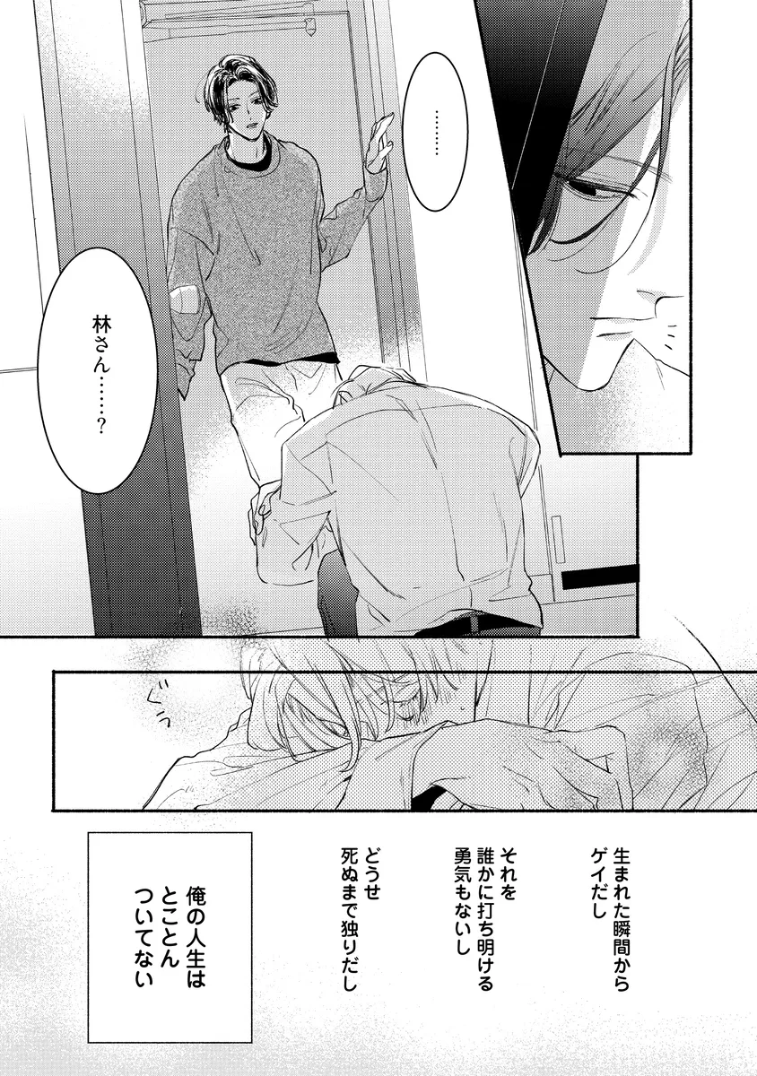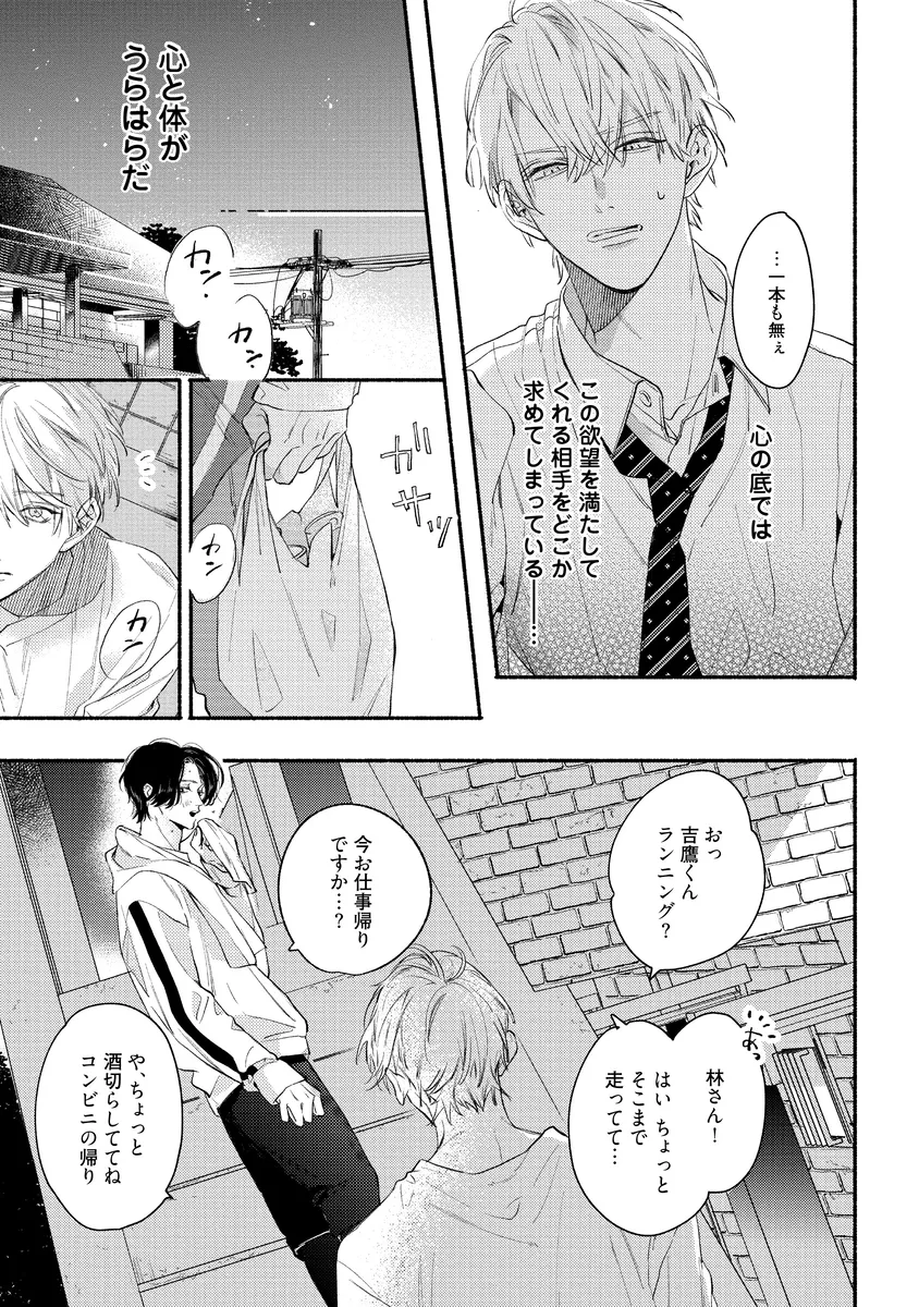 誰しも人には言えない隠し事が一つや二つあるだろう。林は朝の通勤中、大学生の吉鷹と顔を合わせる。朝の挨拶を交わしてから会社に行くのが林の日課だった。そんな林にはどうしてもいないことがあった。誰でもいいから男とセックスをしてみたい。彼女がいたことはあった。でもどうしても勃起できなかったのだ。林はゲイだった、生まれたときからずっと。世間と違う自分を誰にも知られたくなかった。誰も愛さないし、誰からも愛されず、一生独りでいる覚悟もしていた。なのに、心の底ではこの欲望を満たしてくれる相手をどこか求めてしまっている。その夜、林はランニングしていた吉鷹と偶然会う―。